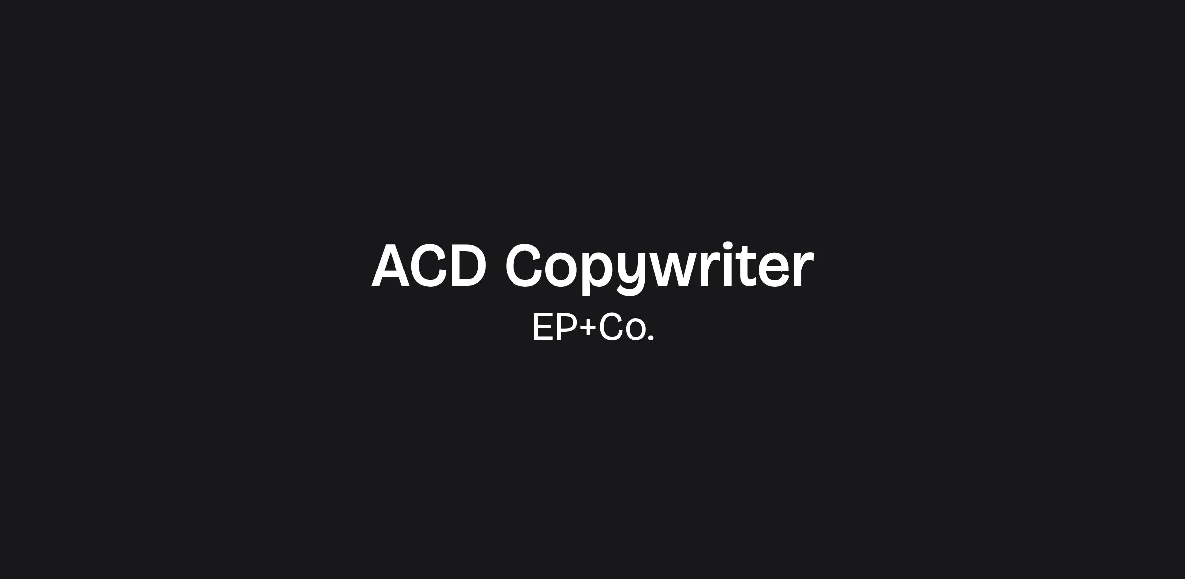 EP+Co. IS LOOKING FOR A FULL-TIME ACD COPYWRITER