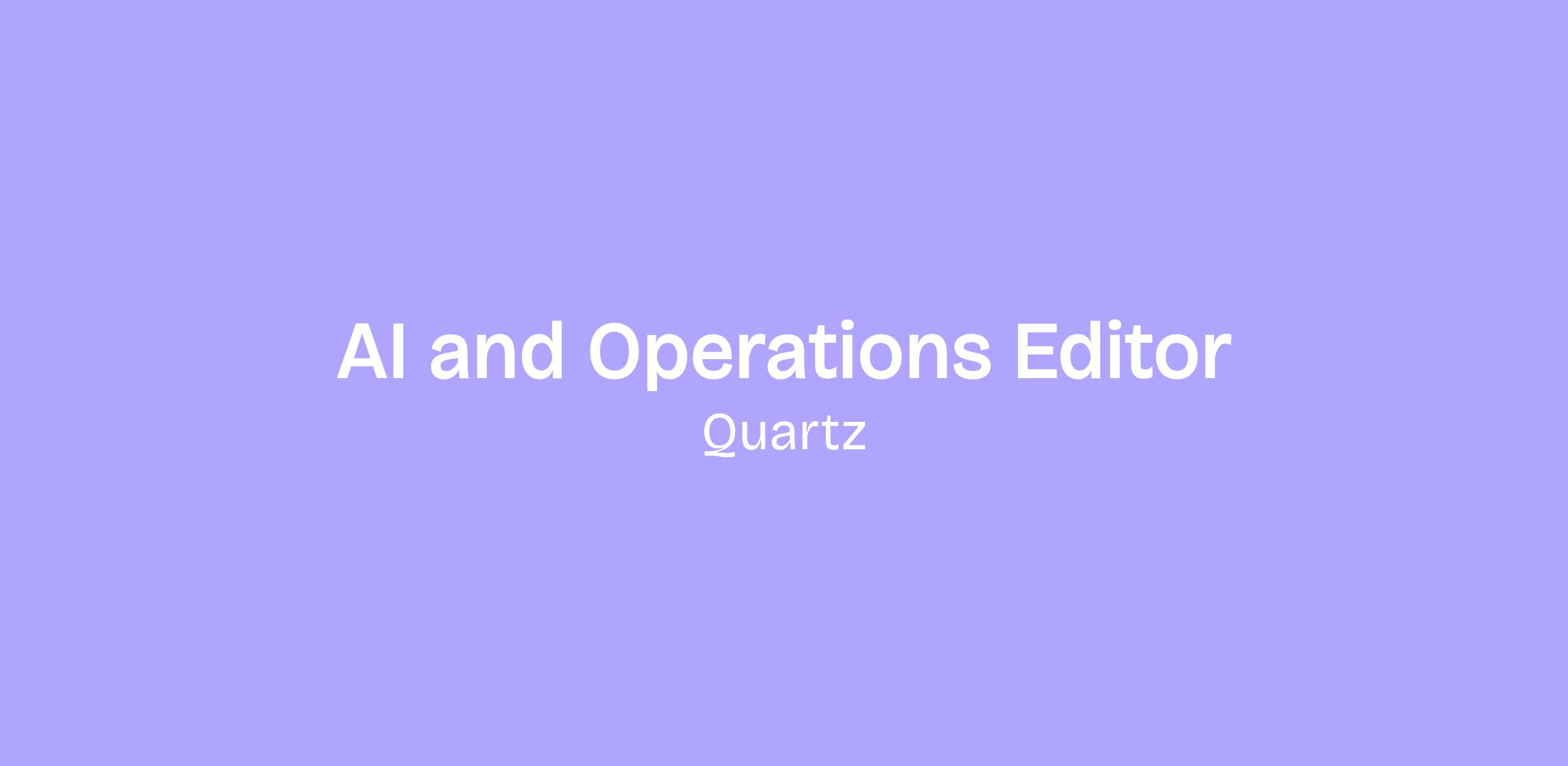 Quartz is seeking an experienced journalist and newsroom leader to serve as Editor, AI & Operations. This is a high-impact leadership role at the center of the media industryâs industryâs strategic and technological transformation. You will be responsible for overseeing, refining, and scaling high-volume publishing operations, driving audience growth while ensuring that Quartz remains an authoritative voice in business news.