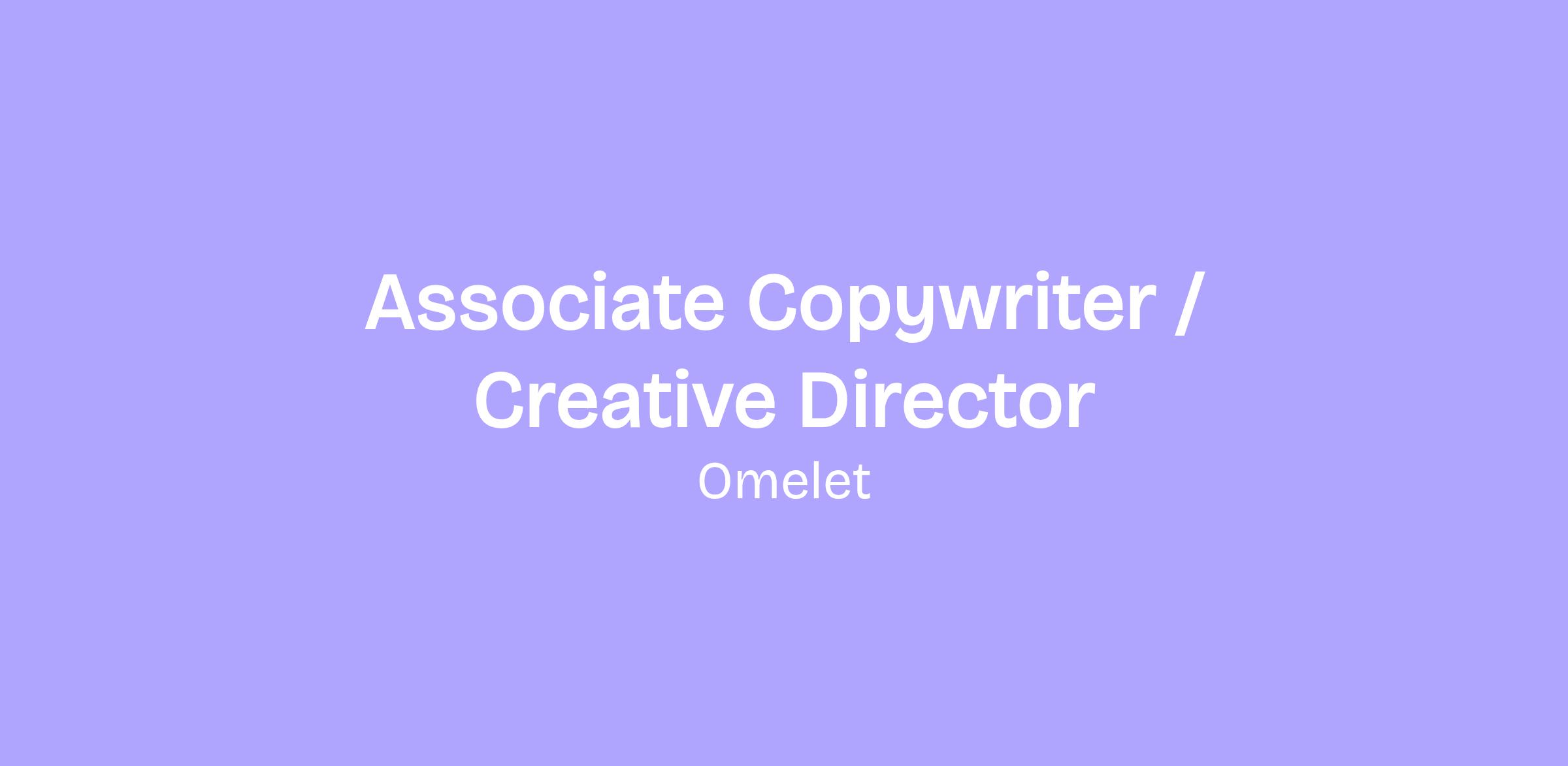 Omelet, an award-winning, independent creative agency with a growing and exciting client roster, is seeking an enthusiastic and motivated, multidisciplinary Associate Creative Director - Copywriter for its Hollywood headquarters location.