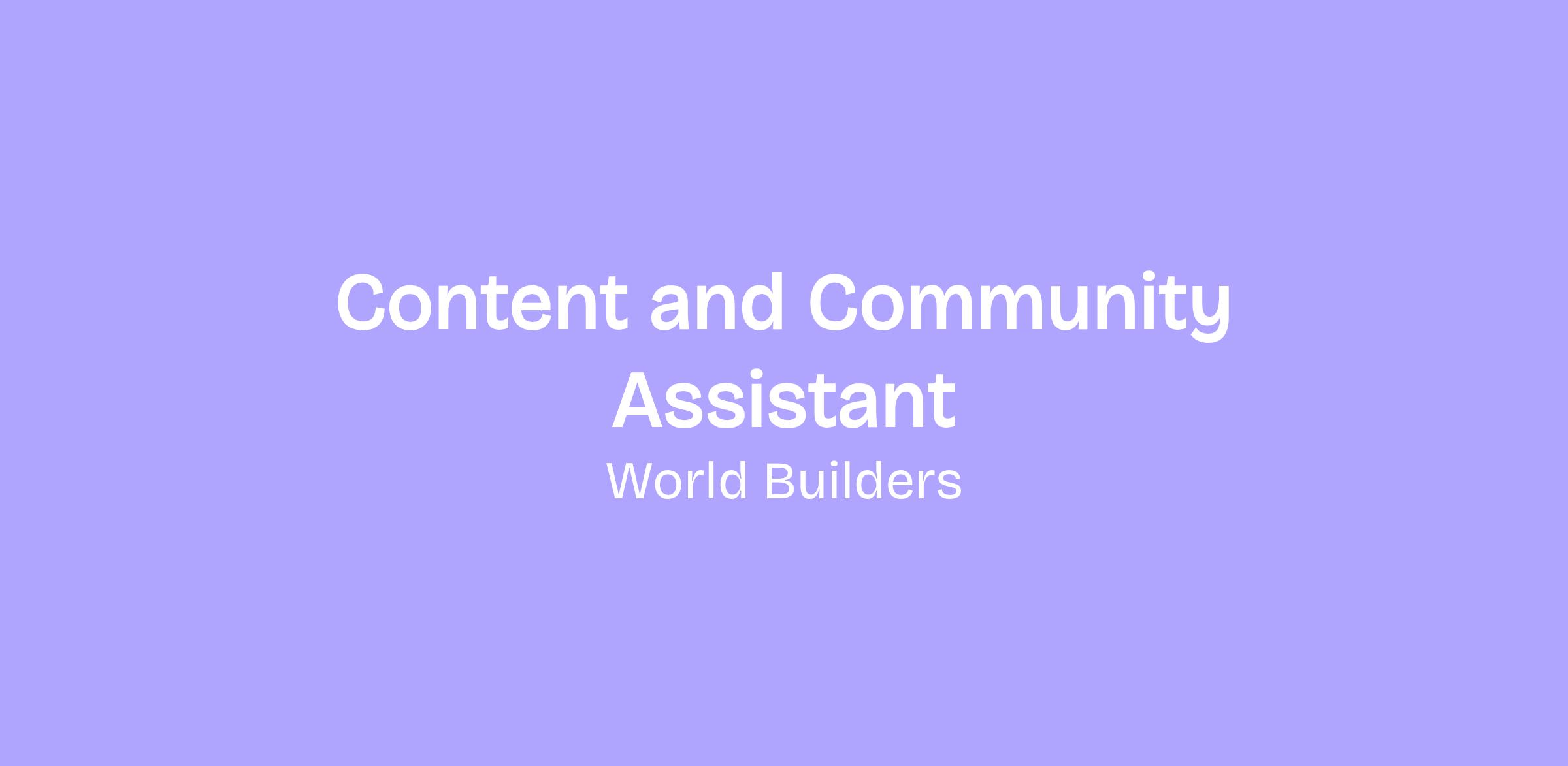 World Builders is hiring a community care & content development assistant!