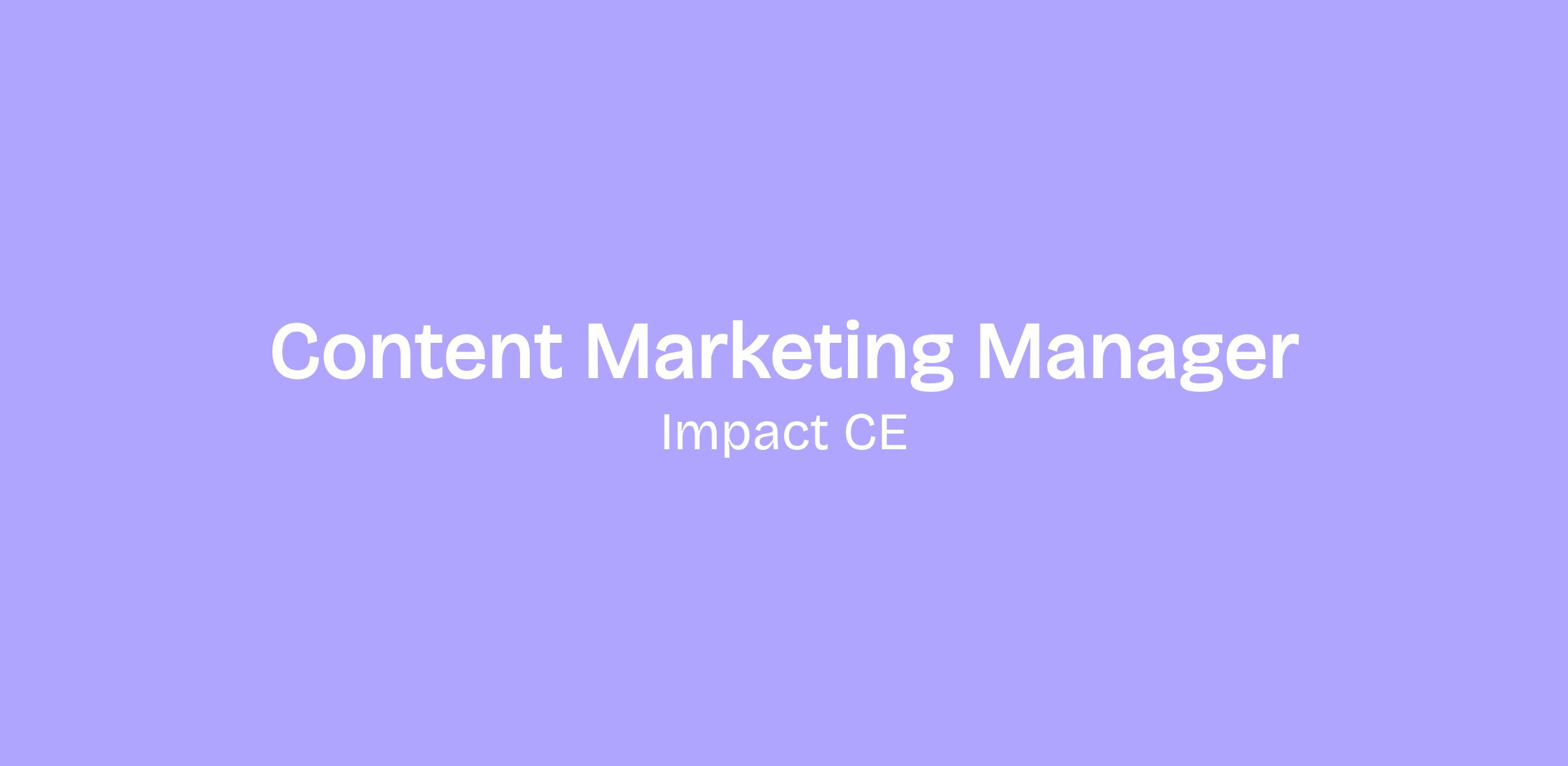 The Content Marketing Manager at Impact CE will play a key role in executing content-driven marketing initiatives that strengthen member engagement while continuing to share and expand our brand voice and story.