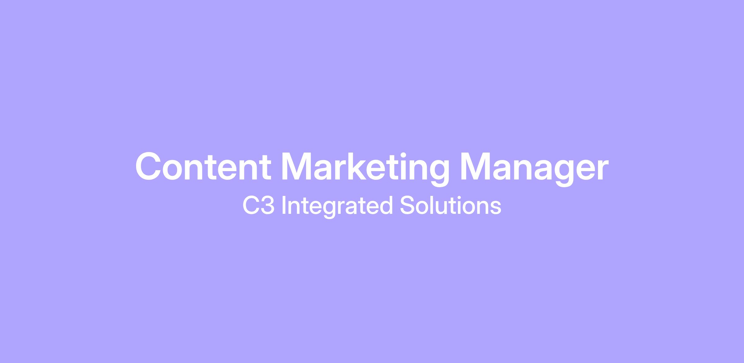C3 Integrated Solutions is seeking a highly motivated Content Marketing Manager to join our growing marketing team. This role is central to shaping our brand voice, strengthening our digital presence, and driving engagement through compelling storytelling and high-quality content. The ideal candidate is both a creative storyteller and a detail-oriented content strategist who thrives in a fast-paced, mission-driven environment.