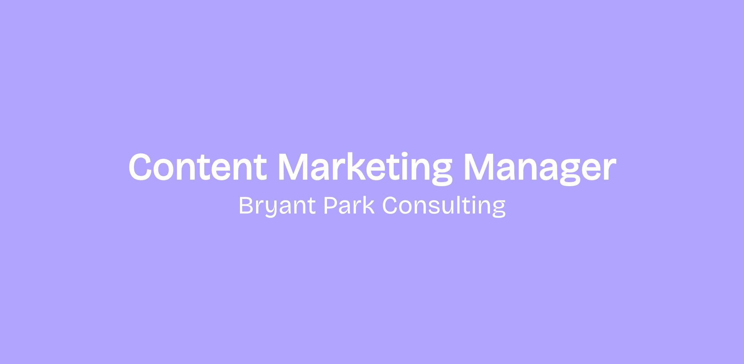 Bryant Park Consulting is an Equal Opportunity Employer. All qualified applicants will receive consideration for employment without regard to race, color, religion, sex, national origin, disability status, protected veteran status, sexual orientation, gender identity or any other characteristic protected by law.