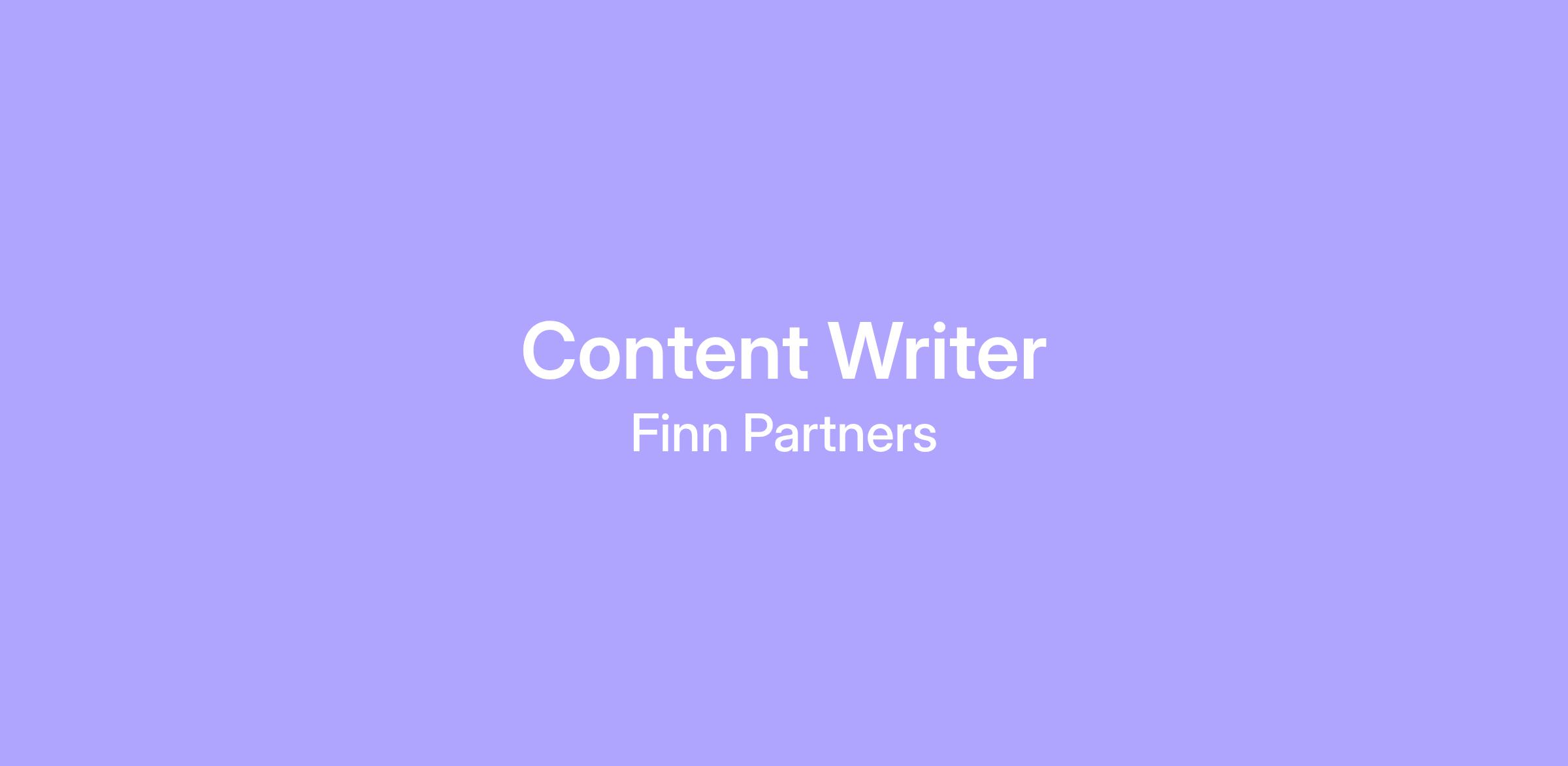 The growing 40+ person creative team at FINN Partners needs a writing ace who writes with insight, not just instinct. You’ll tackle a wide range of assignments for our financial services clients—always through the lens of audience needs, client objectives, and business impact.