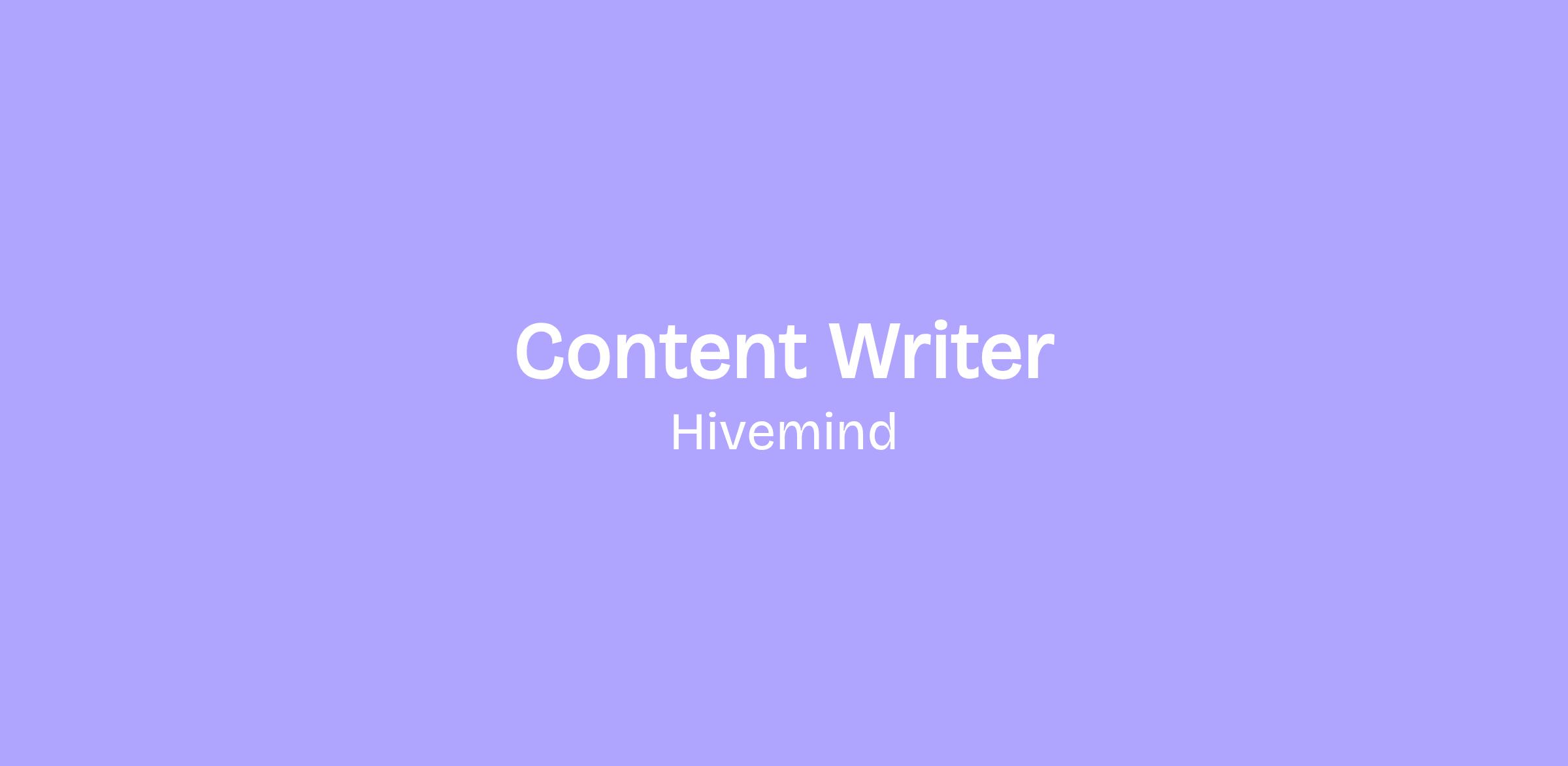 Objective: to learn more about you, your background and experience, and your interest in the Content Writer role and Hivemind World