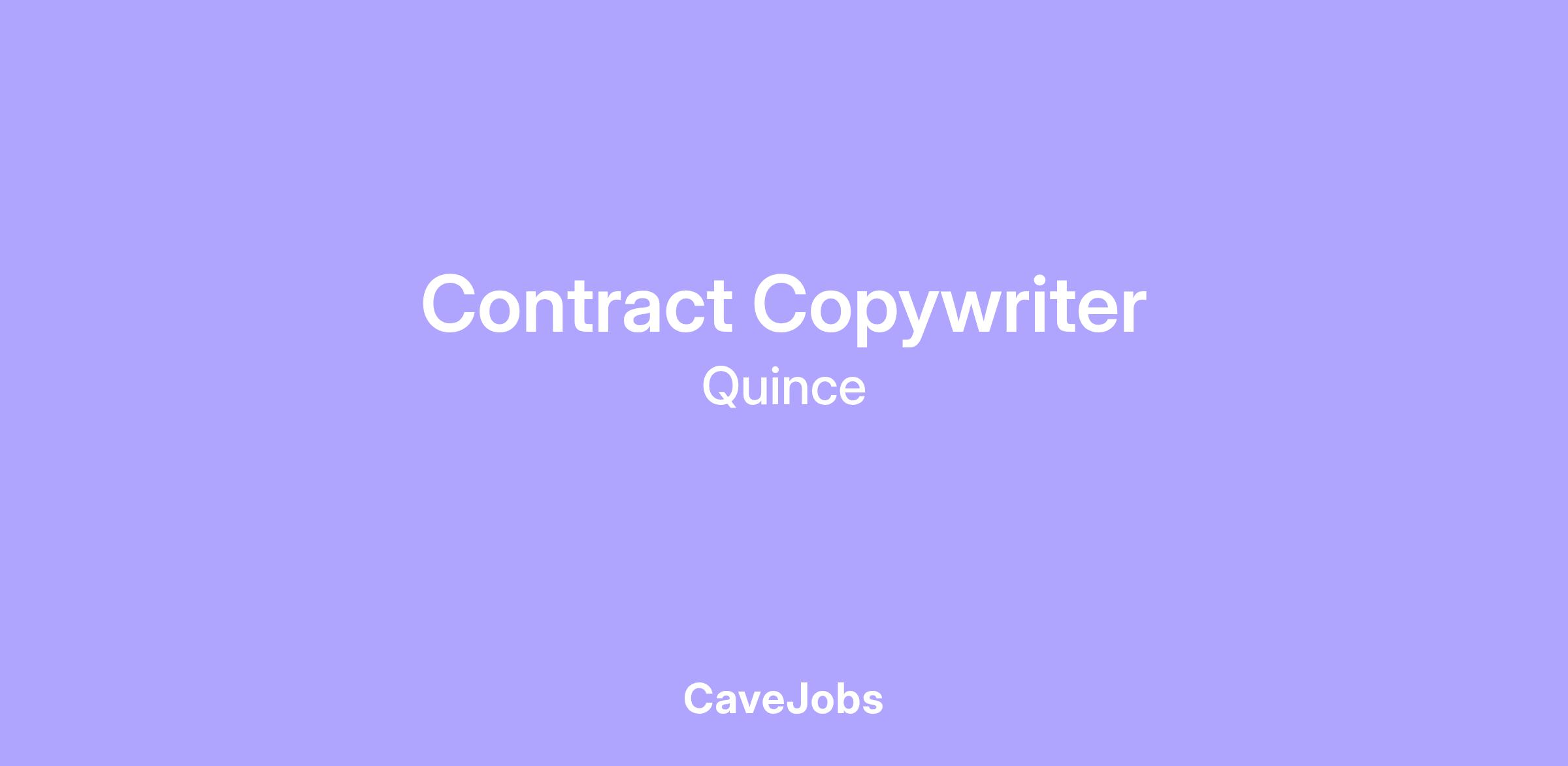 Quince is looking for a Copywriter (Contract) to support our growing content needs across brand and marketing channels. This role is ideal for a nimble, detail-oriented writer who thrives in a fast-paced environment, understands the importance of data-informed copy, and can deliver polished, on-brand work at scale. You’ll be part of the engine behind our emails, SMS, product pages, and more—helping shape how customers experience the Quince voice every day.