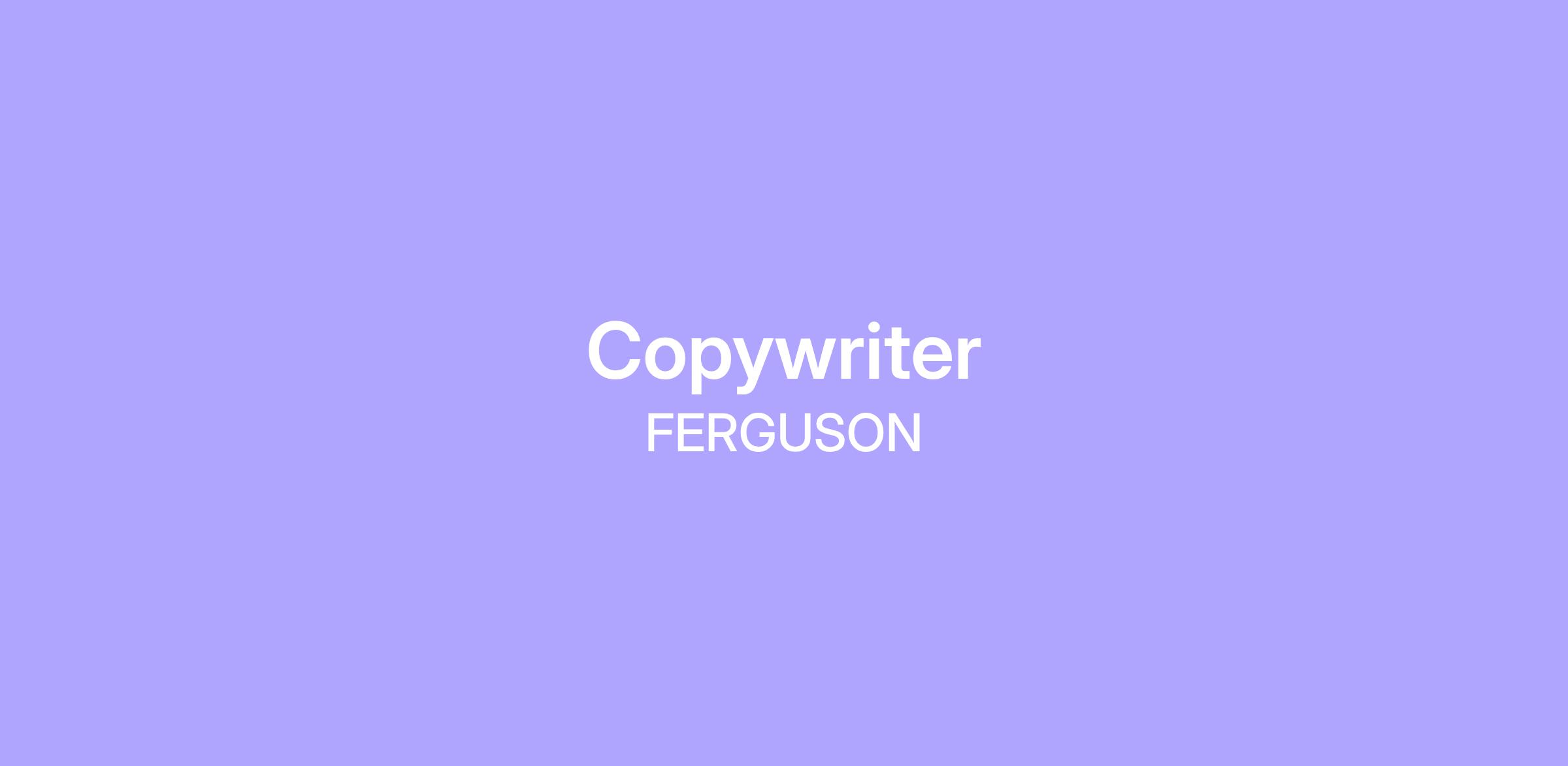 The Copywriter at Ferguson plays a critical role in supporting the development of creative content for multi-channel campaigns and creative projects, including video, print, digital, and long-form website content. Under the guidance of the Brand Content and Copy Manager, you will craft engaging copy that resonates with our target audiences while adhering to the brand’s tone and voice.