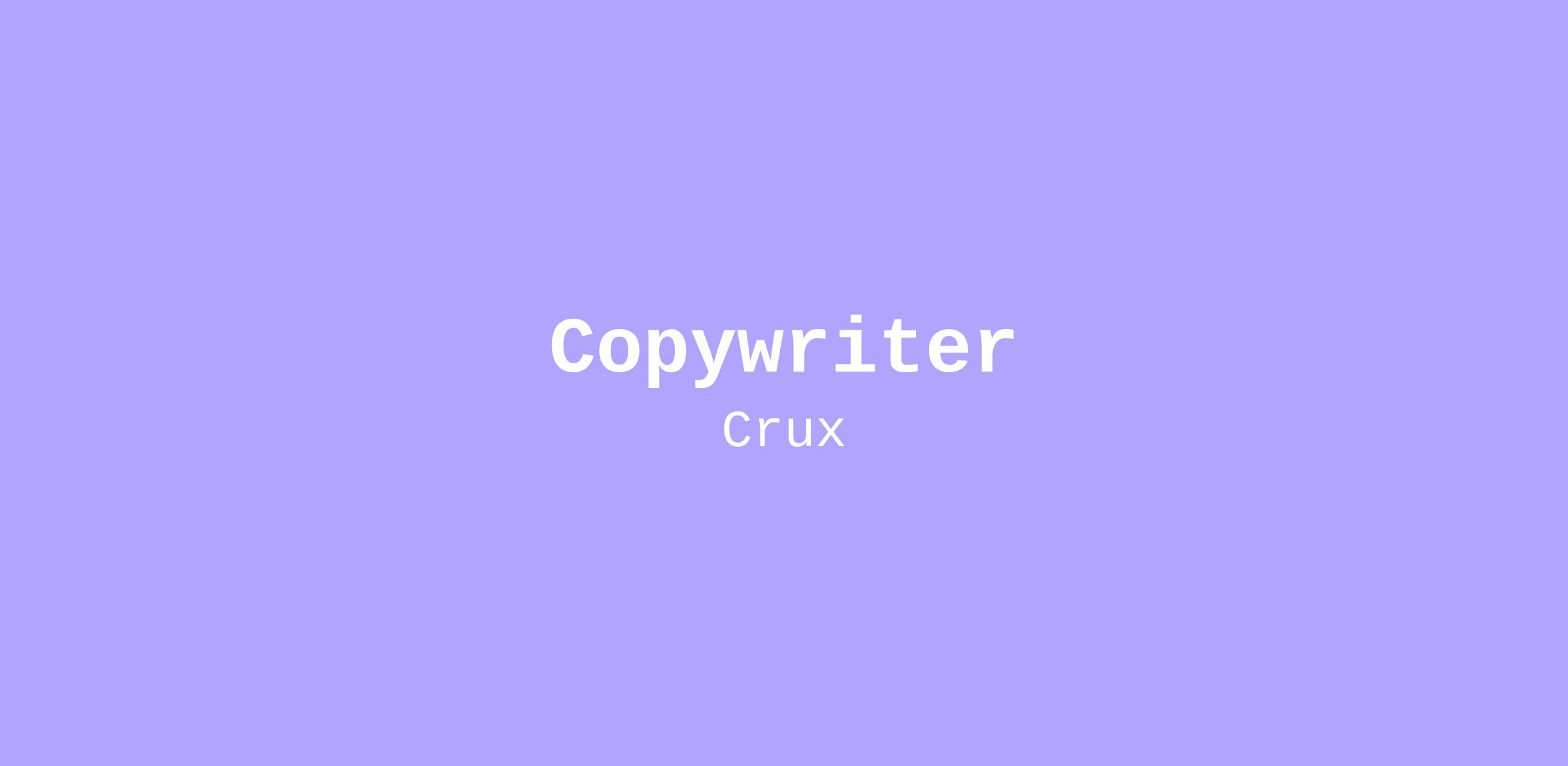 Crux’s content and market intelligence are central to all areas of the business. Crux’s Copywriter will play a crucial role in accelerating our content program, further establishing Crux as the dominant thought leader in clean energy finance while accelerating top-of-funnel sales pipeline growth. This role sits on Crux’s Growth Team and reports to Holly Bowers, Content Marketing Strategist.