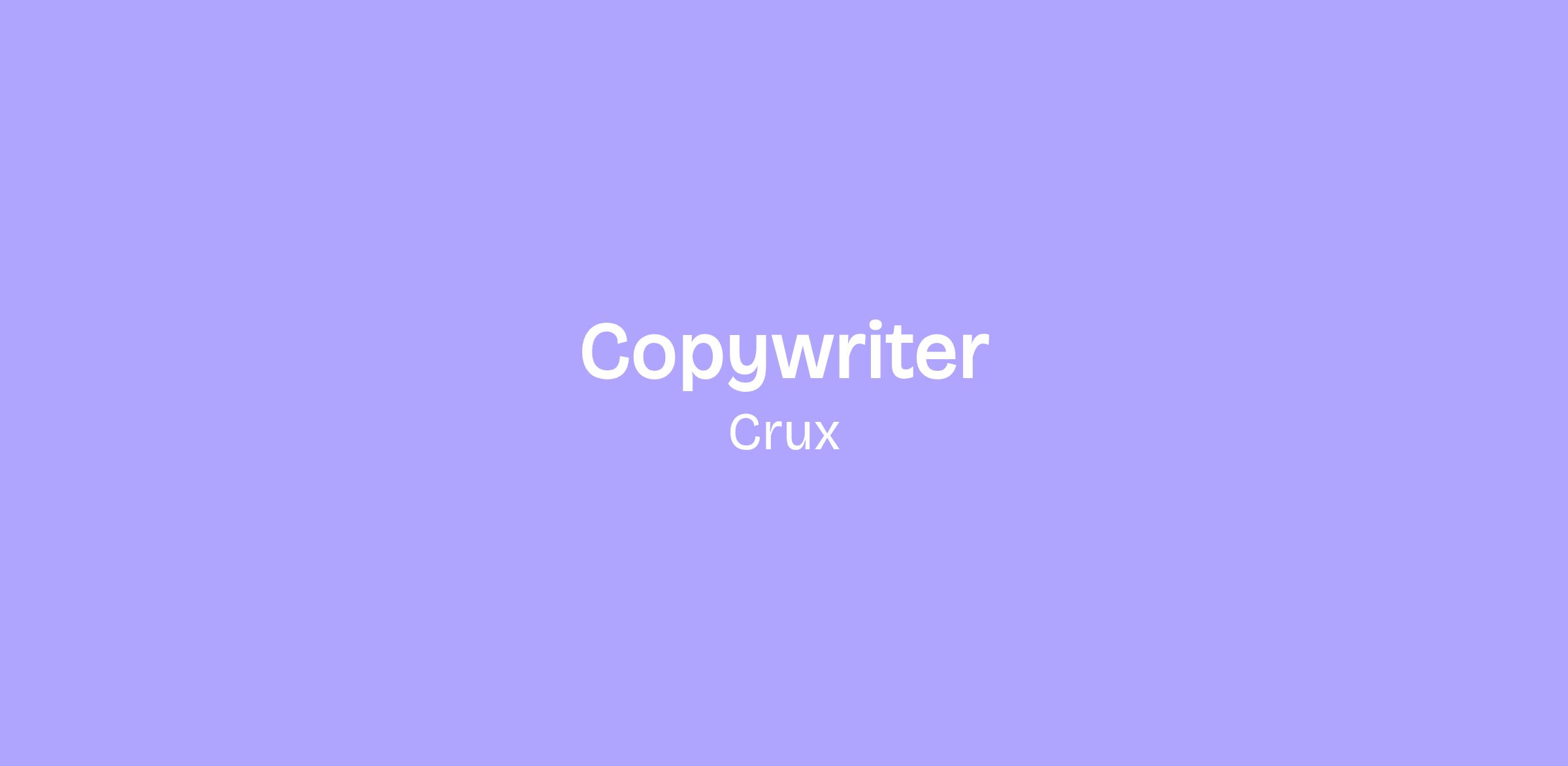 Crux’s content and market intelligence are central to all areas of the business. Crux’s Copywriter will play a crucial role in accelerating our content program, further establishing Crux as the dominant thought leader in clean energy finance while accelerating top-of-funnel sales pipeline growth. This role sits on Crux’s Growth Team and reports to Holly Bowers, Content Marketing Strategist.
