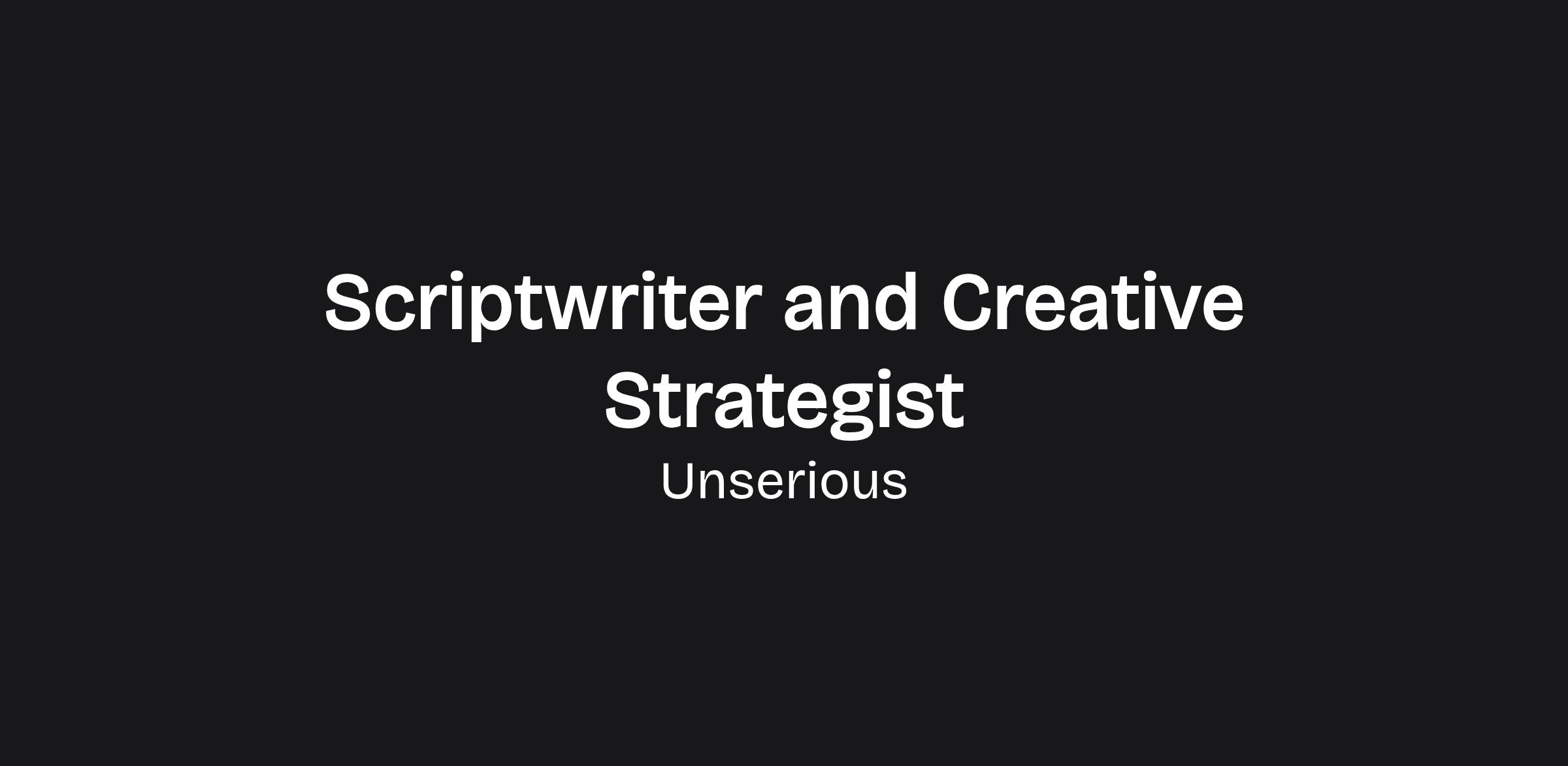 I am looking for a second Creative Strategist to join Unserious.