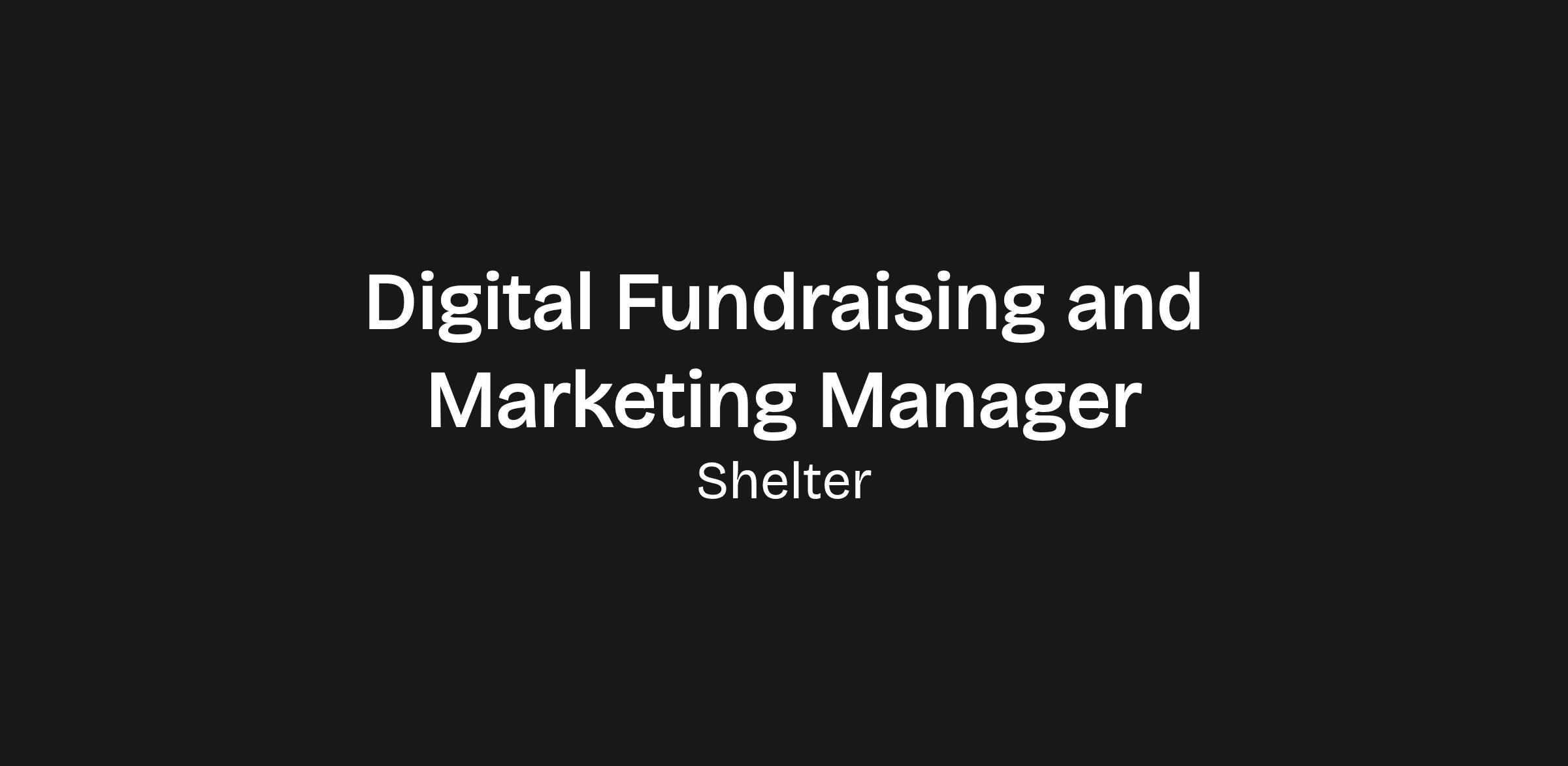 This role as Digital Fundraising and Marketing Manager sits within Shelter’s Digital Fundraising and Marketing team.