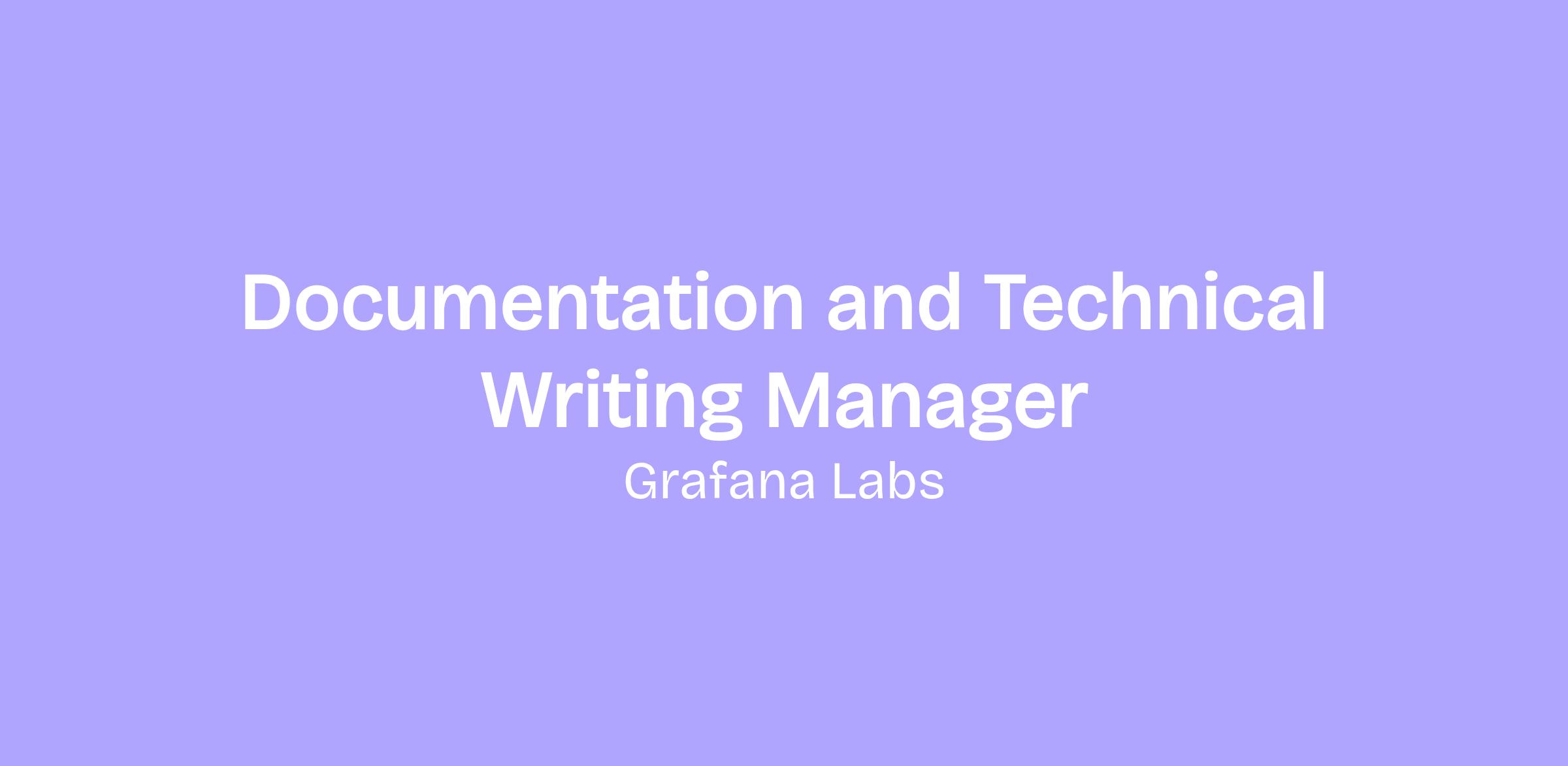 Grafana Labs is looking for a Technical Writing Manager.