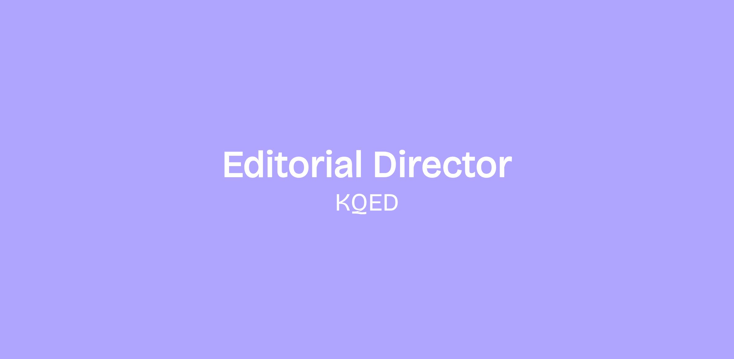 Initially reporting to the Editor in Chief, this leader defines the point of view that guides technology content across platforms: radio and podcast programming, digital video, newsletters, live events, and more. The Editorial Director sets priorities, identifies the themes and questions that animate KQED's technology coverage, and cultivates a distinctive editorial sensibility that distinguishes our work in a crowded media landscape. They work hands-on with reporters, hosts and other journalists to develop their voices, shape content for maximum editorial impact, and maintain the journalistic standards that reflect KQED's public service mission.