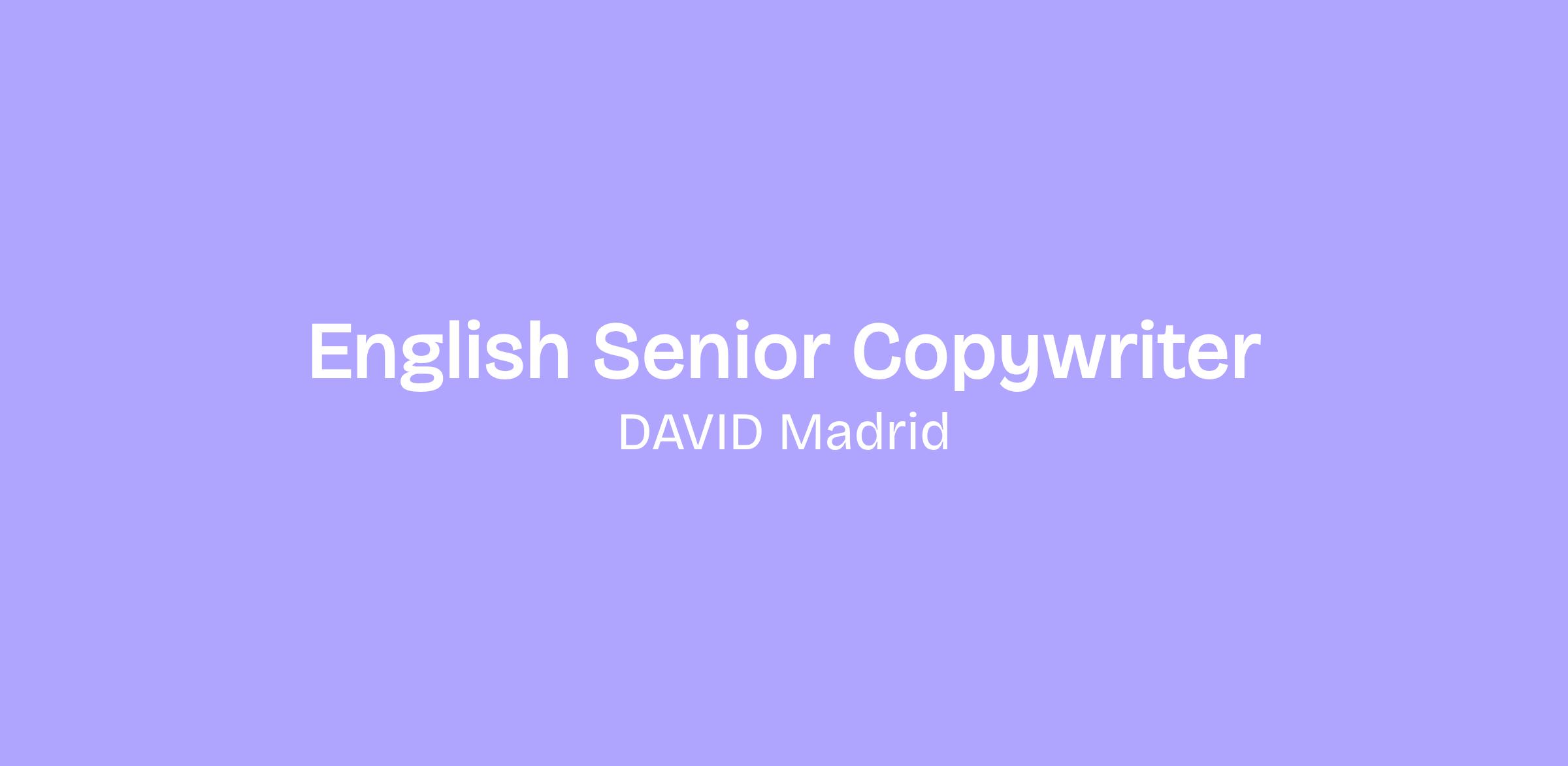 Native English Senior Copywriter based in Madrid.