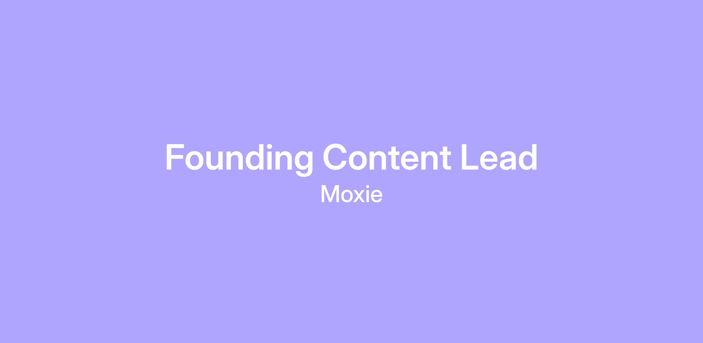 As Founding Content Lead, you’ll build MOXIE’s content and media engine from scratch.