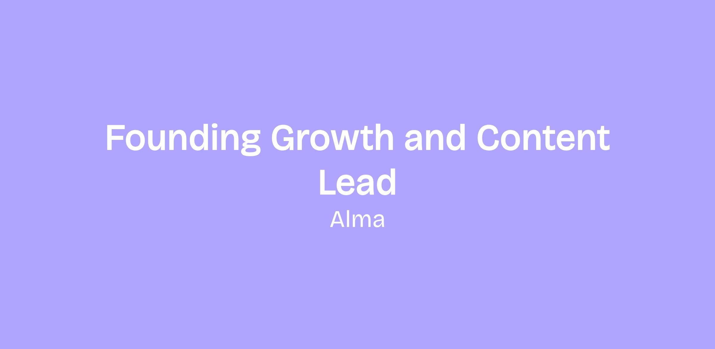 Alma is hiring a Founding Growth & Content Lead, and we're skipping the traditional process. š