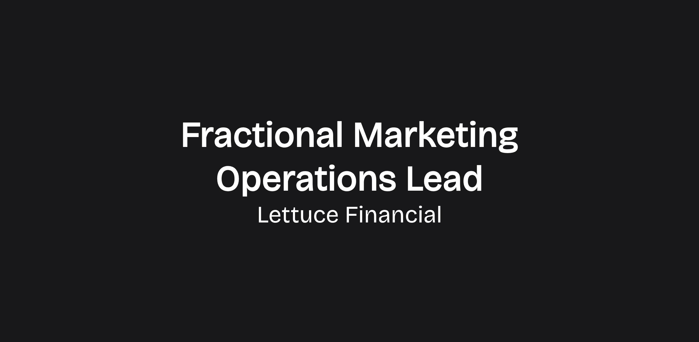 We’re hiring a Fractional Marketing Operations Lead at Lettuce Financial.