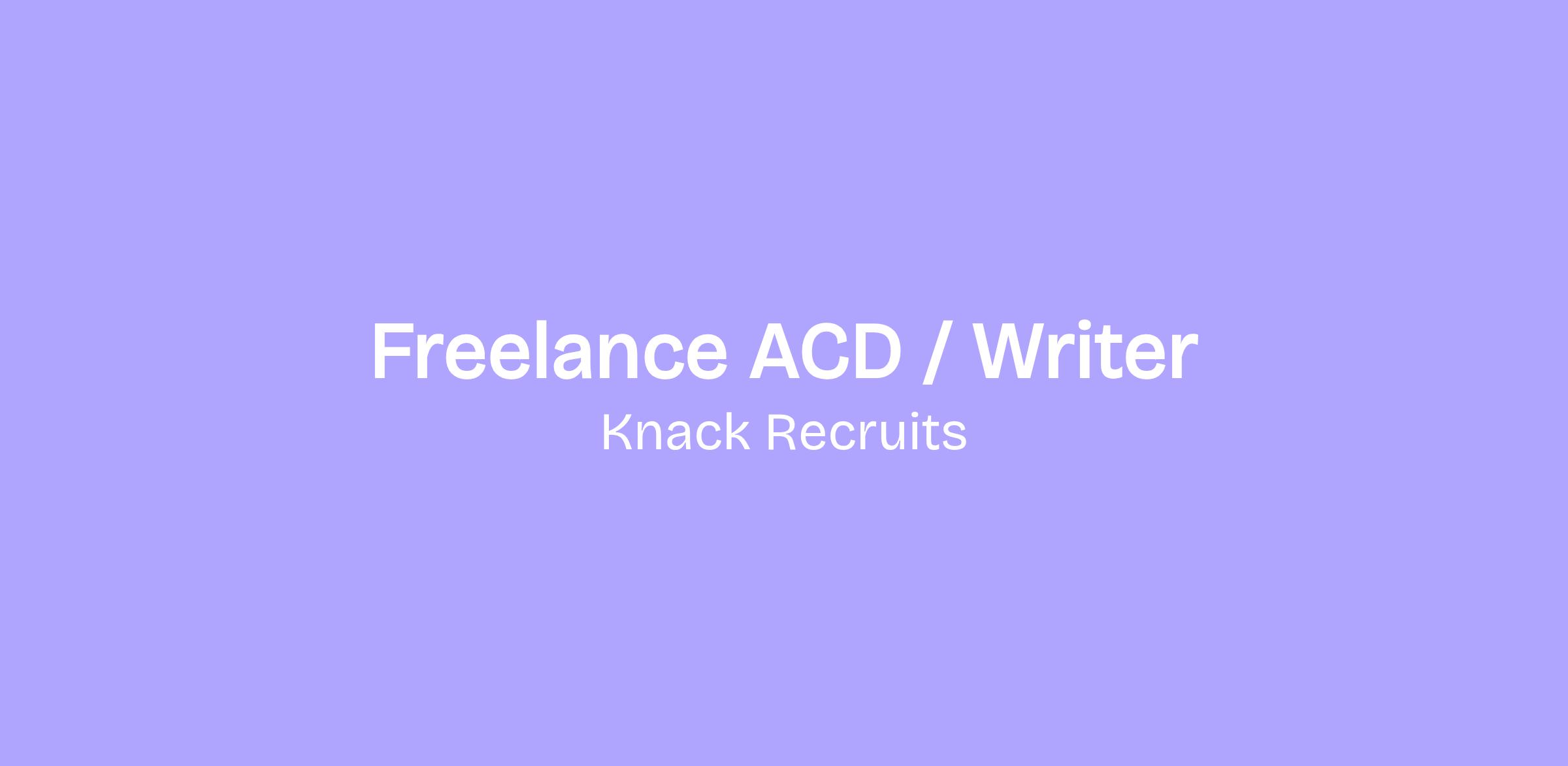 I have a solid, long term Freelance ACD role with potential for full time.