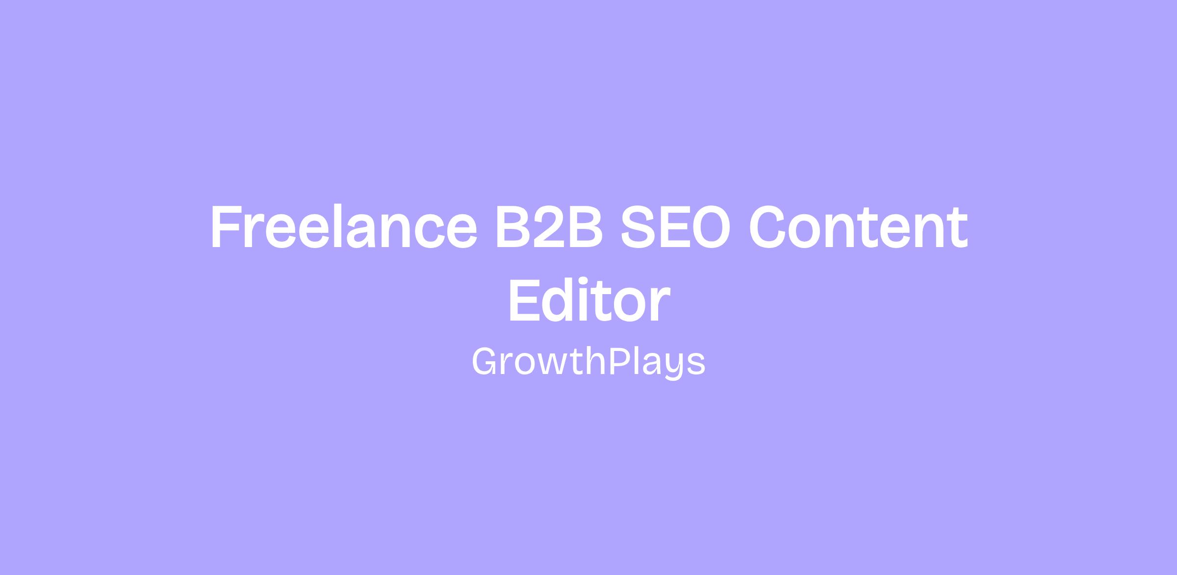 - Growth Plays is looking for freelance content editors to help us edit, refine and improve the content we produce for some of the biggest names in B2B SaaS, AI, infrastructure, and developer tools.