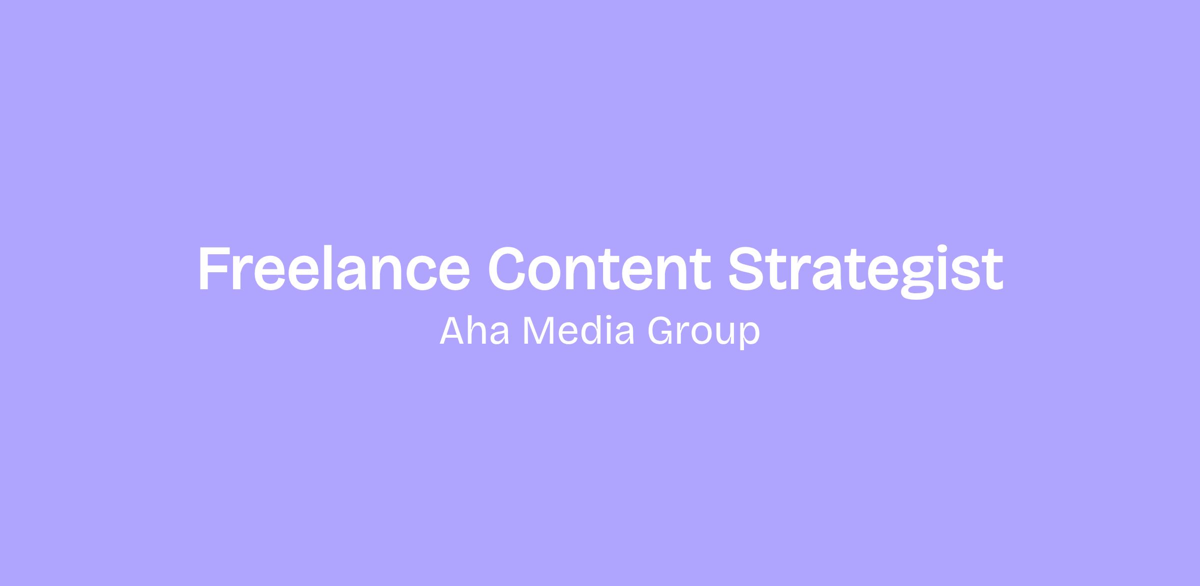 Aha Media Group is seeking freelance content strategists to join our growing team of remote digital marketing experts. Aha Media is a leading content strategy and content marketing consultancy with deep healthcare experience. Our clients include academic medical centers, health systems, hospitals, and healthcare technology and medical device companies.