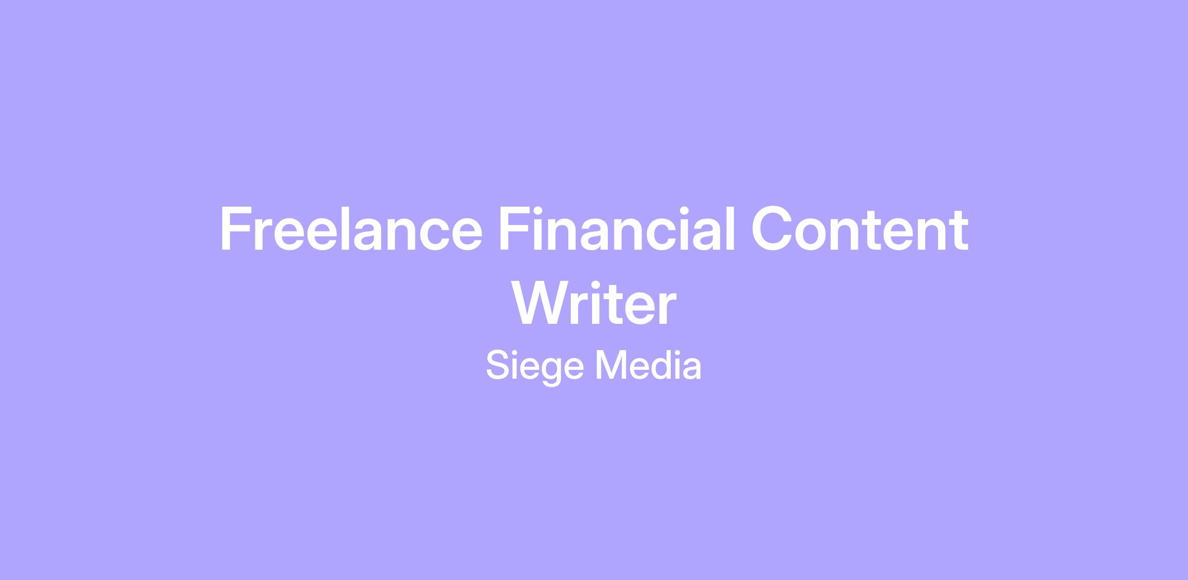 Siege Media is a growing and remote-first organic growth agency! We are nationally recognized on Inc.’s Best Workplaces list and Inc. 5000 list, highlighting the 5000 fastest-growing private companies. Interested in working with the Siege team? We currently have a spot open for a talented Freelance Financial Content Writer to help us continue to deliver great content for our world-class clients.