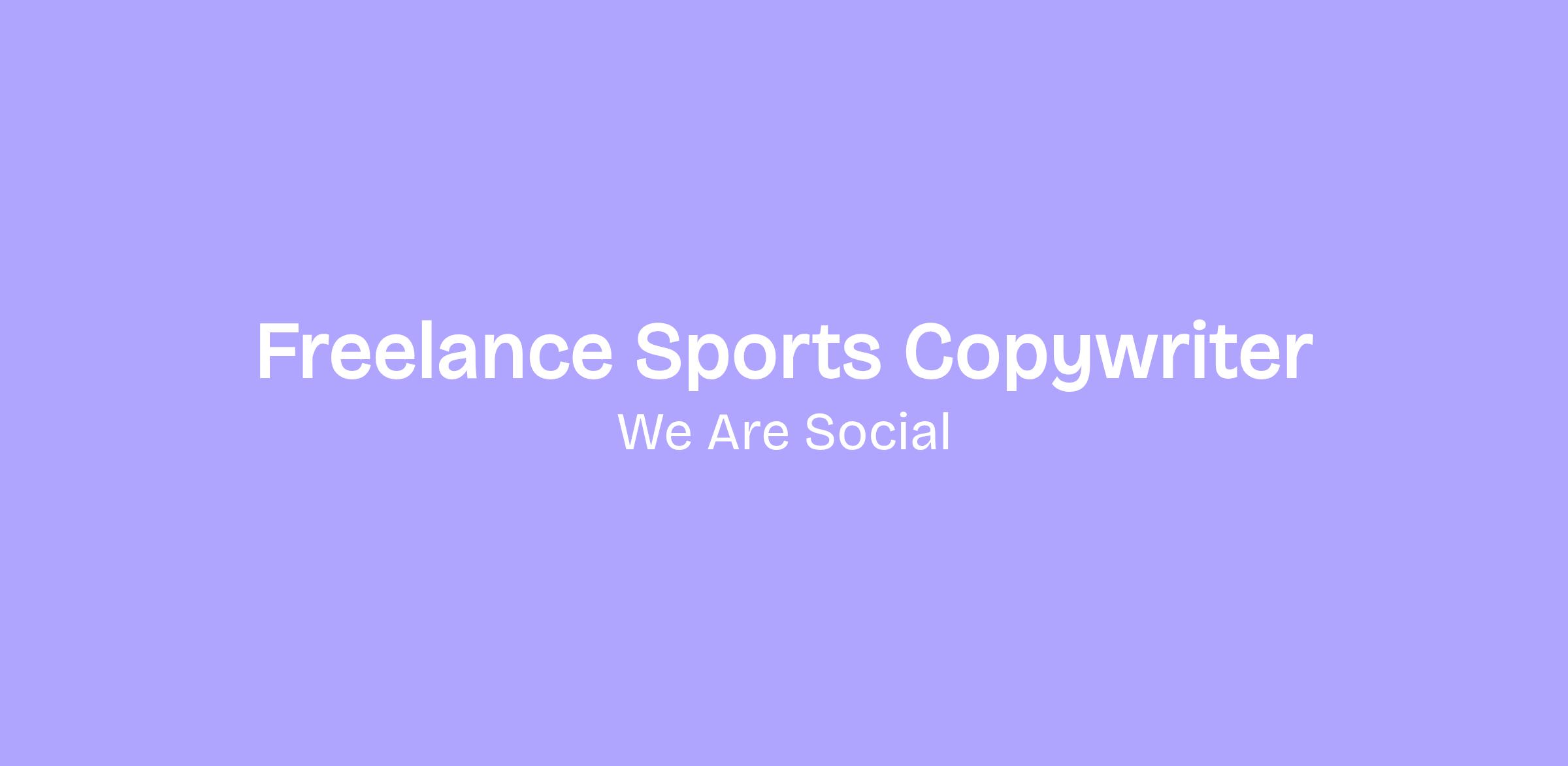 ✨ We Are Social is hiring sports-obsessed Freelance Creatives. Calling all Associate Creative Directors, Copywriters and Art Directors who live and breathe SPORTS (Football, F1, Soccer, Tennis etc.).