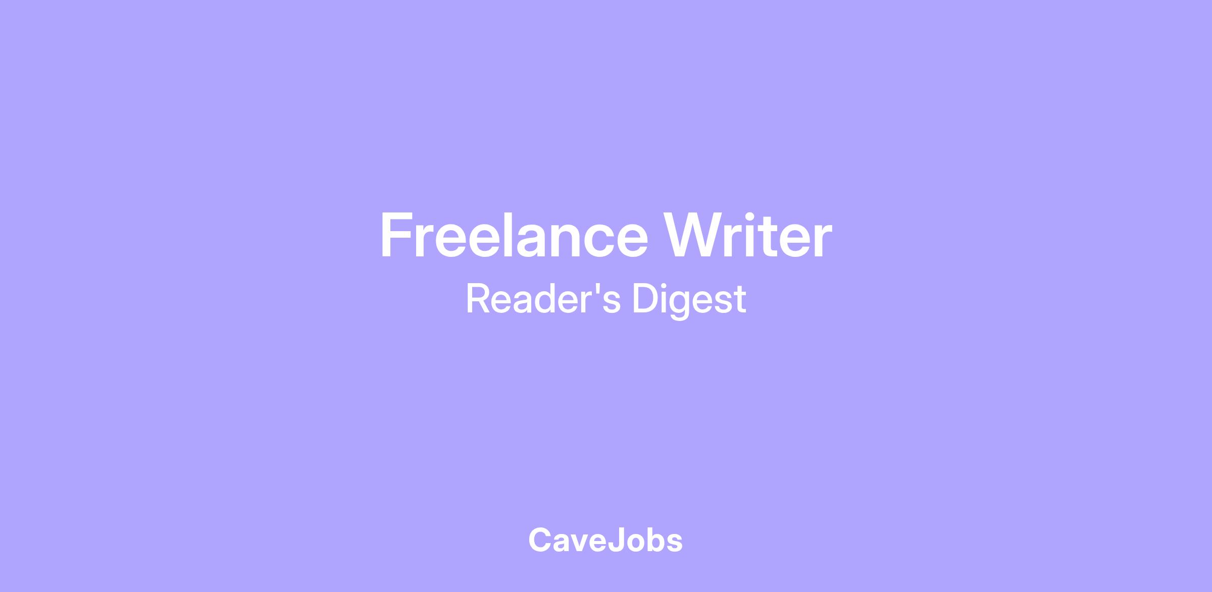 Hi, everyone! I'm building out Reader's Digest's freelance pool, and I'm looking for strong writers, thorough researchers and all-around-excellent journalists in a variety of categories.