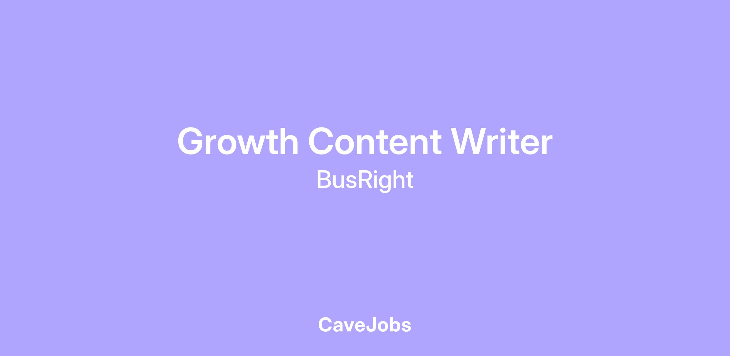 This is an ideal role for an experienced Growth Content Writer with exceptional attention to detail, who wants to grow within a fast-paced, high-impact environment. This is a hands-on role for someone who wants to write content that directly influences revenue outcomes while building the foundation of BusRight’s marketing function. Compensation is competitive and flexible based on experience.