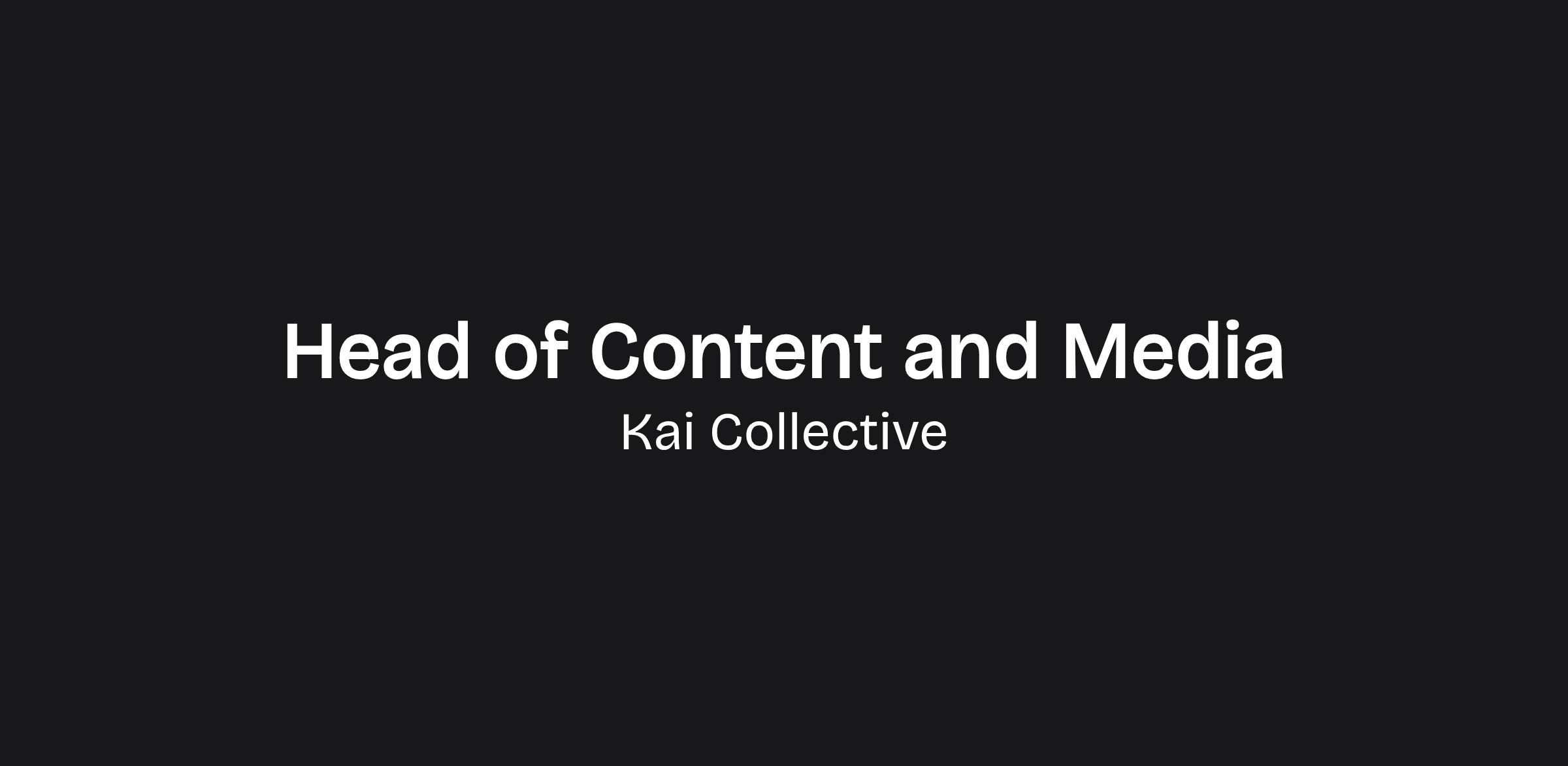 I'm hiring a Head of Content & Media at Kai Collective.