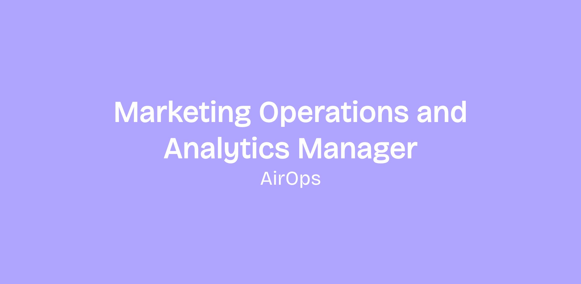 🚀 We're hiring a Marketing Operations & Analytics Manager