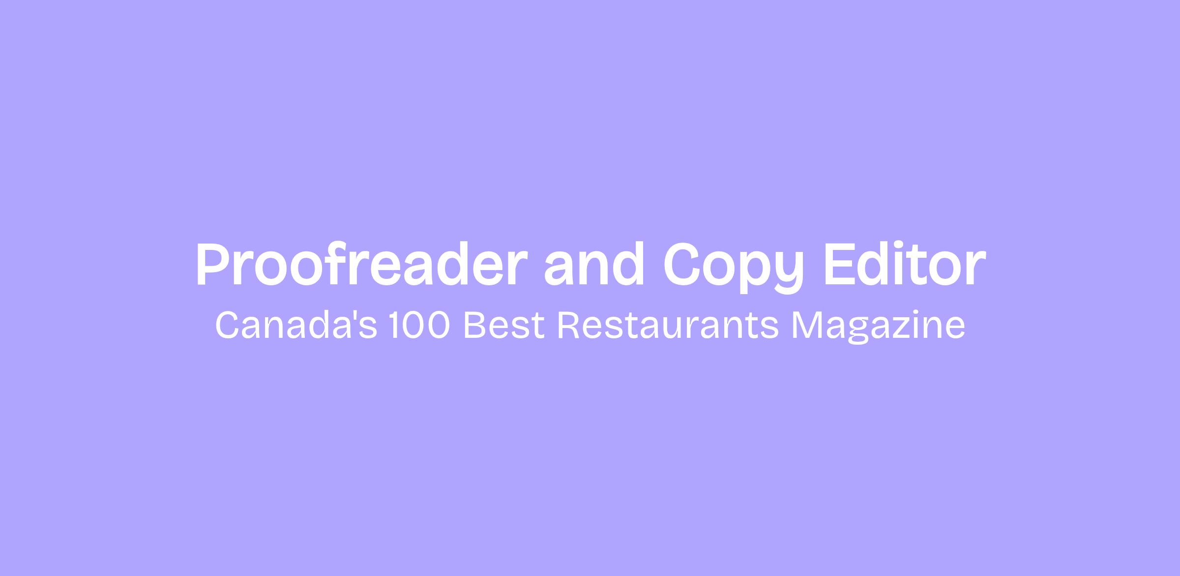 Hello, all! I am hiring. (Yes, I never thought I'd type that.) We are seeking a proofreader (who can also copy edit) for Canada's 100 Best Restaurants magazine. The production cycle is in motion, and work will ramp up through April when we upload the magazine. I need someone comfortable marking up PDFs. You need to be DropBox savvy. Culinary (including wine and spirits) sophistication is a huge asset, but not totally necessary if you like food and own cookbooks and can follow a style guide. We pay a going hourly rate. You'd work roughly 50 hours over the next 9 weeks or so. Hit me up for details: [click apply]