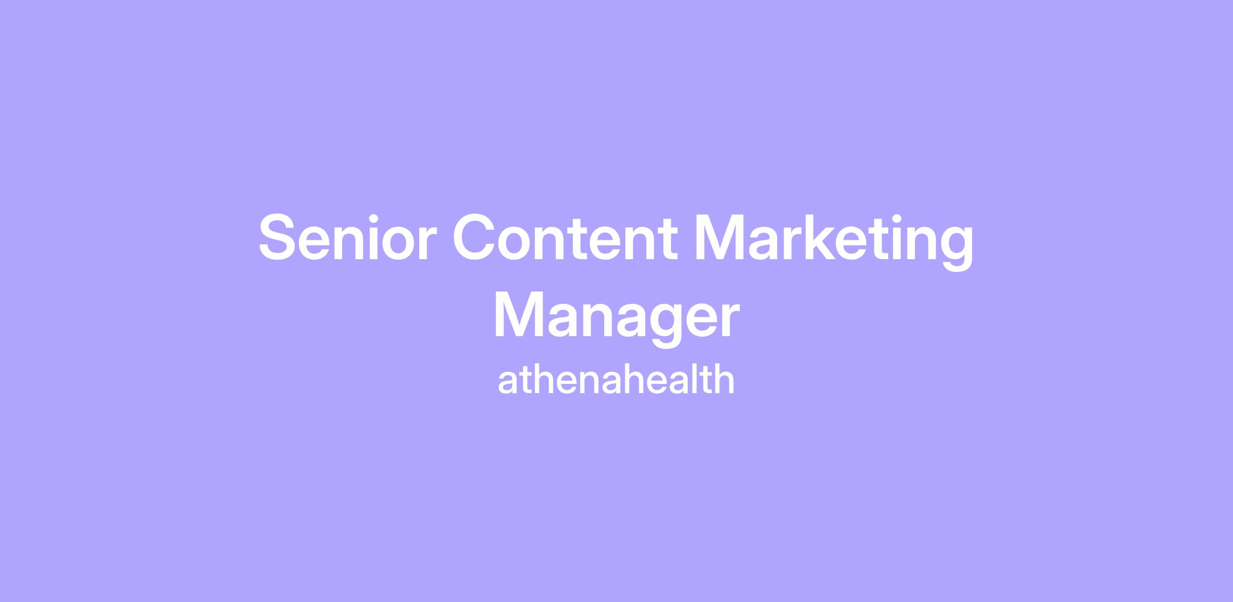 We are looking for a Senior Content Marketing Manager to join our Marketing division here at athenahealth. In this role, the Senior Content Marketing Manager for the athenaInstitute will serve as the editorial and strategic lead for athenahealth’s flagship thought leadership platform. This individual will work to transform research, data, and ideas into influential, insight-driven content that defines athenahealth’s intellectual presence in the healthcare industry.