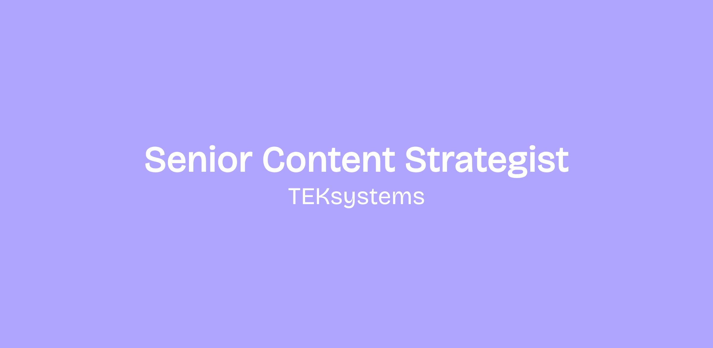 You’re a Senior Content Strategist with experience leading the full content strategy lifecycle and advanced content strategy engagements. You bring deep content strategy expertise and business acumen– combining both to identify concepts and patterns in complex situations. You’ve been known for solving problems with a pragmatic and practical approach, scaling your impact across the team.