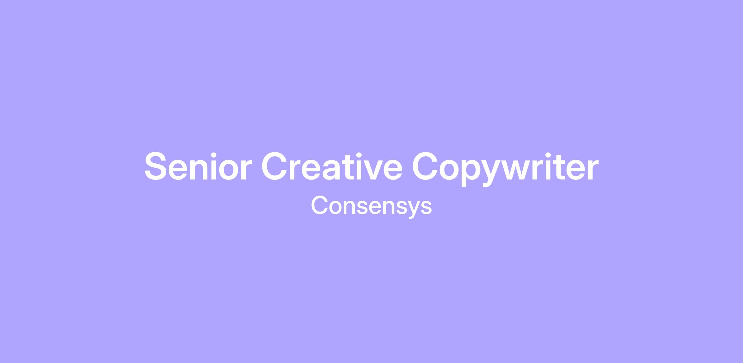 As a Senior Creative Copywriter, you will be responsible for concepting, writing, overseeing work, and driving marketing initiatives across Consensys, MetaMask and Linea. Working closely with your creative counterparts in the marketing team and the product design community across Consensys, you’ll raise the bar for the creative quality of our marketing efforts by crafting brand narratives, marketing campaigns, digital experiences, video scripts, content marketing and social media ideas. And to do so, you'll bring with you a wealth of writing experience and be curious, conceptual, creative and intuitive with a deep commitment to creating memorable work that resonates with the highly-nuanced crypto community and breaks through the noise. Your workday might include: