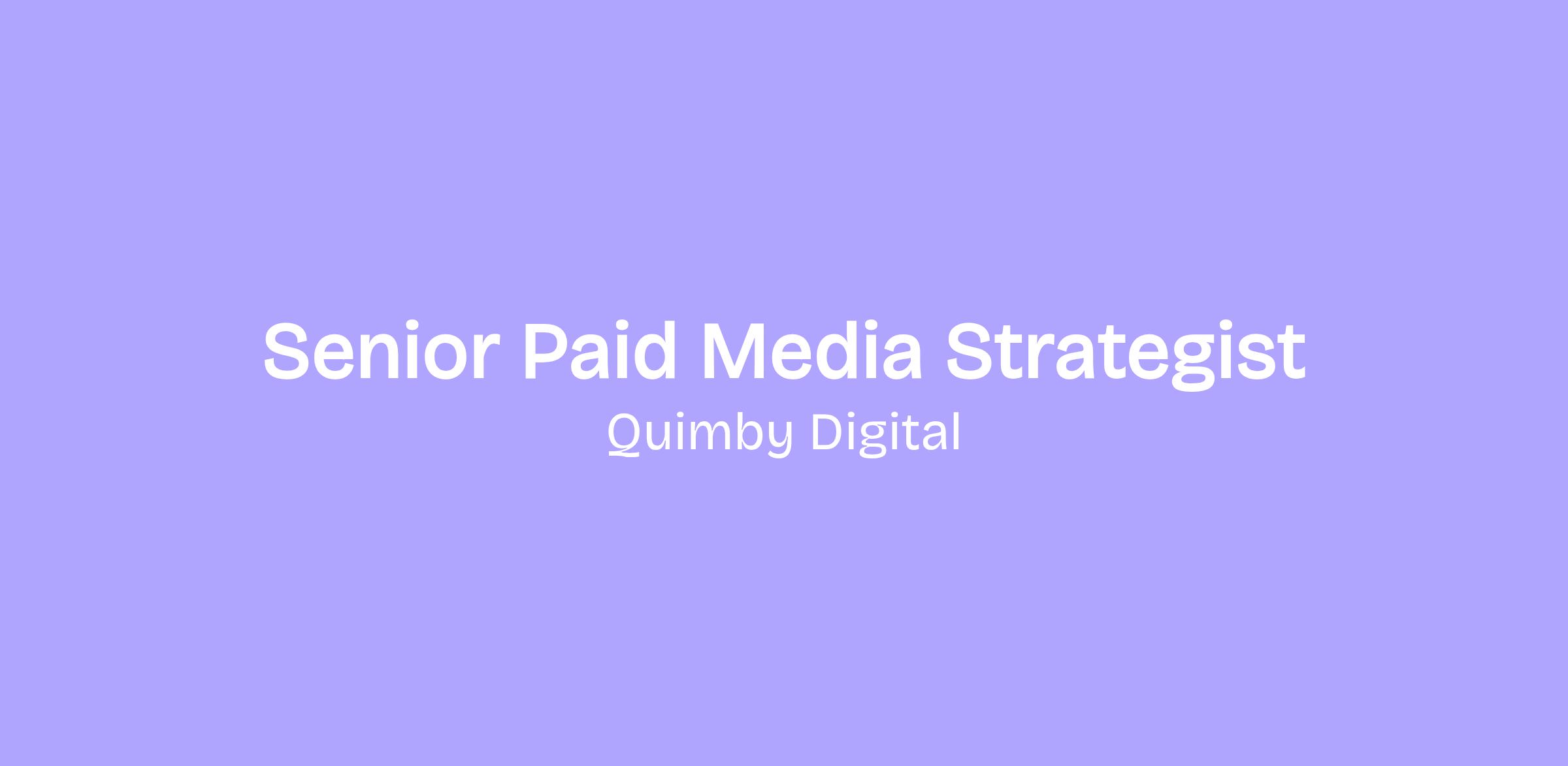 Quimby Digital needs a Senior Paid Media Strategist.