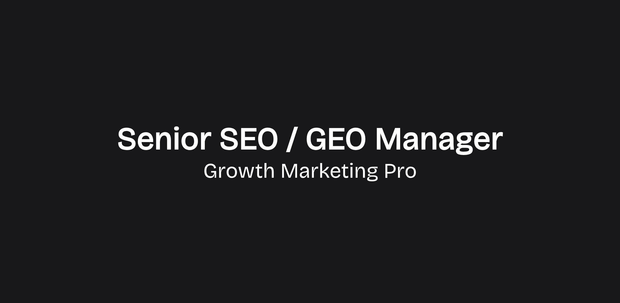 Senior SEO/GEO ManagerΒ Open Role Β· Organic Growth